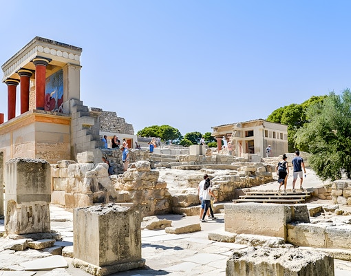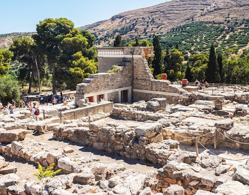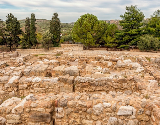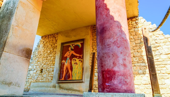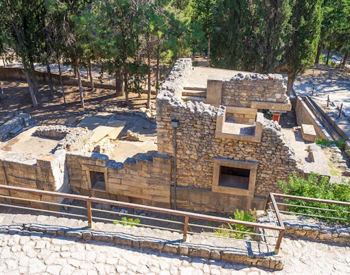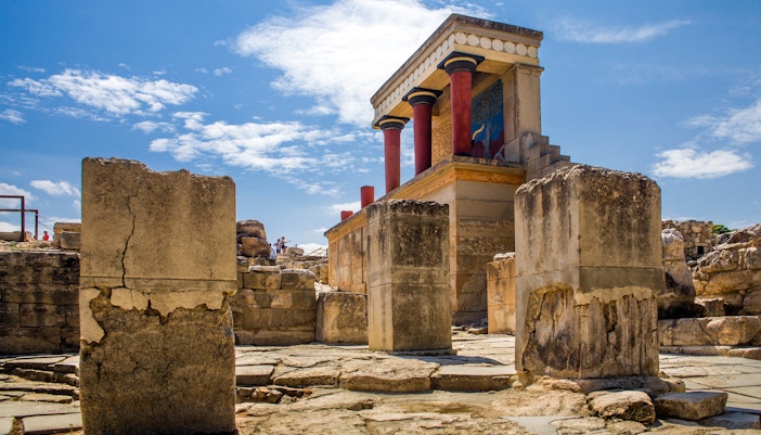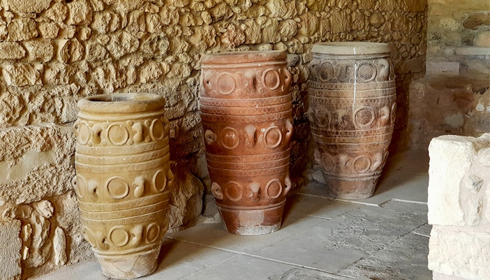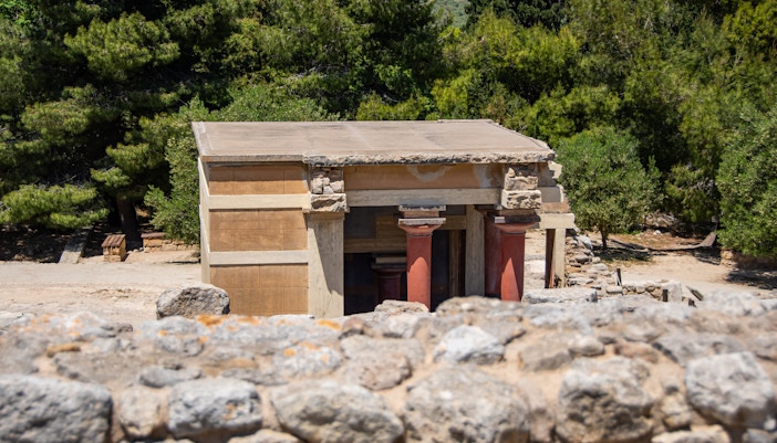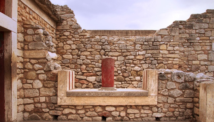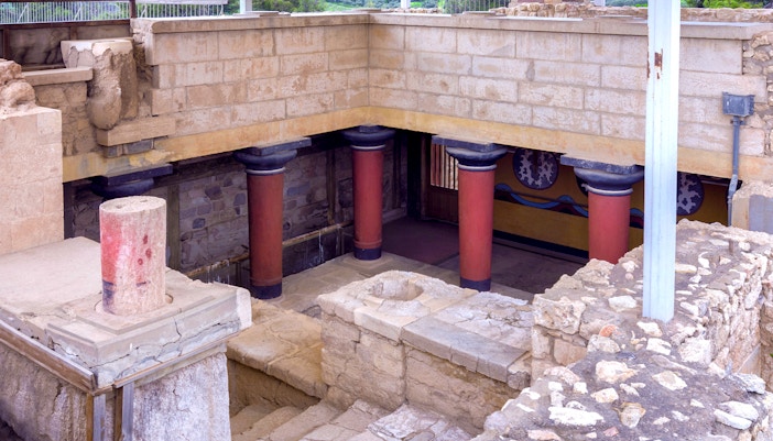 De Troonzaal is een van de best bewaarde delen van het Minoïsche Paleis. Het heeft een groot, rond stenen bassin, dat waarschijnlijk werd gebruikt voor rituele doeleinden. Kijk uit naar de levendige fresco's van griffioenen, mythische wezens met het lichaam van een leeuw en het hoofd van een adelaar, die de koninklijke sfeer van de kamer versterken.